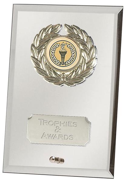 6" (15cm) Crest Silver Mirror Glass Trophy